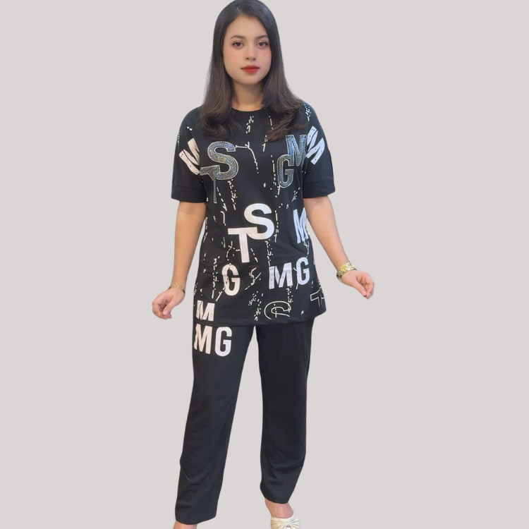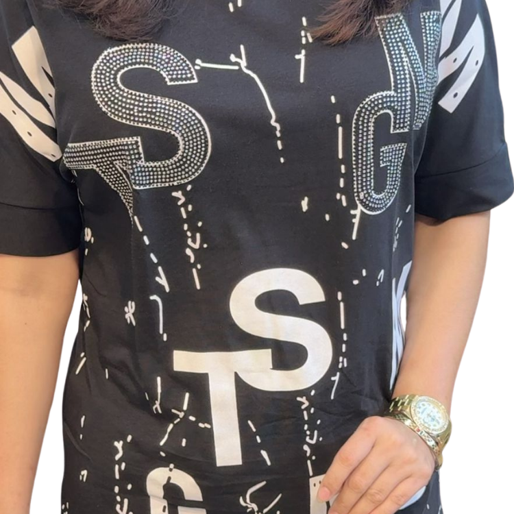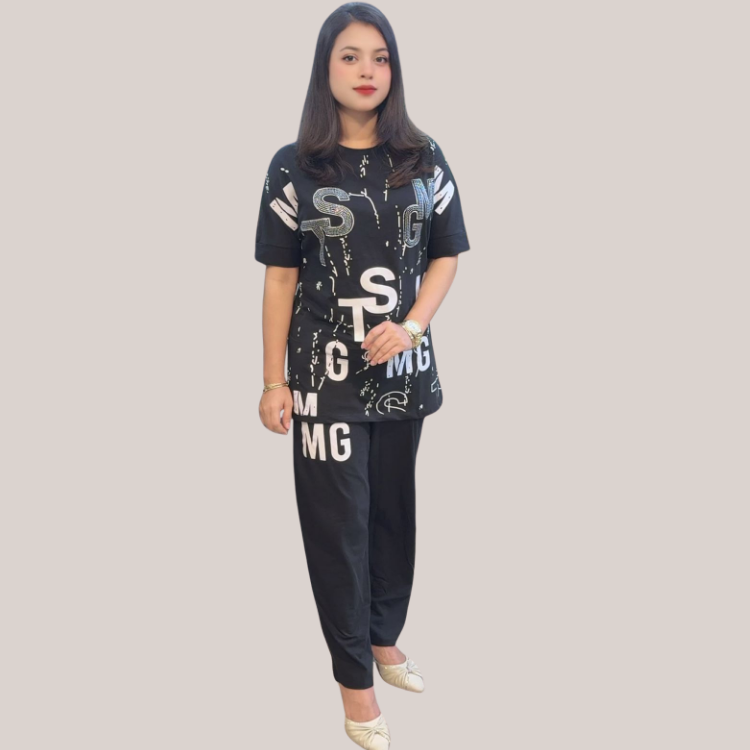 প্রিন্টের সাথে ঝকঝকে স্টোন—প্রিমিয়াম ফ্যাশন টাচ।