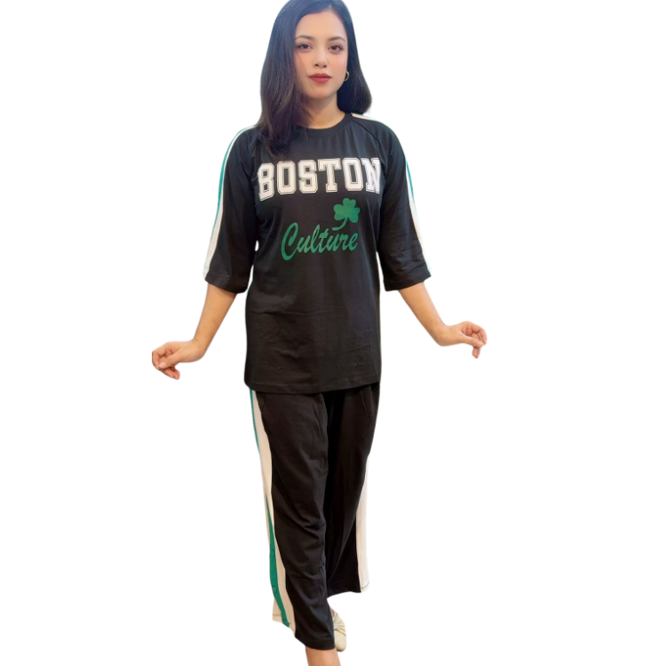 সামনে Bold “BOSTON Culture” গ্রাফিক প্রিন্ট