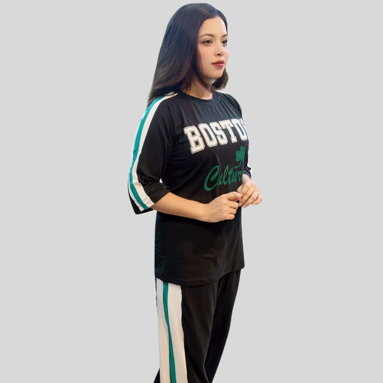 টপ ও প্যান্টে স্পোর্টি কনট্রাস্ট স্ট্রাইপ—স্টাইল আরও বাড়ায়।