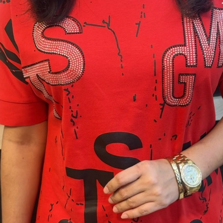 বেস রেড কালারের সাথে ম্যাচিং প্রিন্ট টাচ
