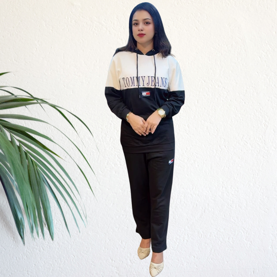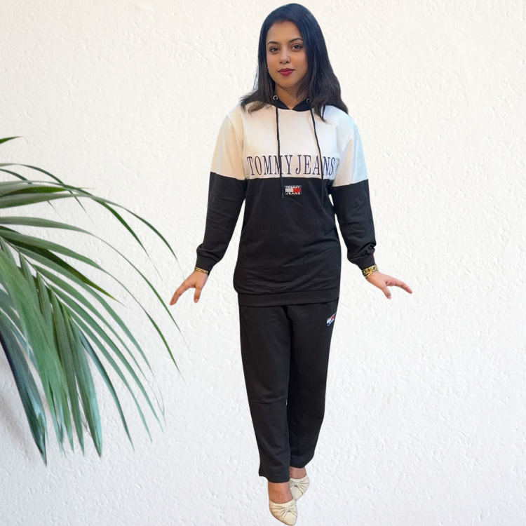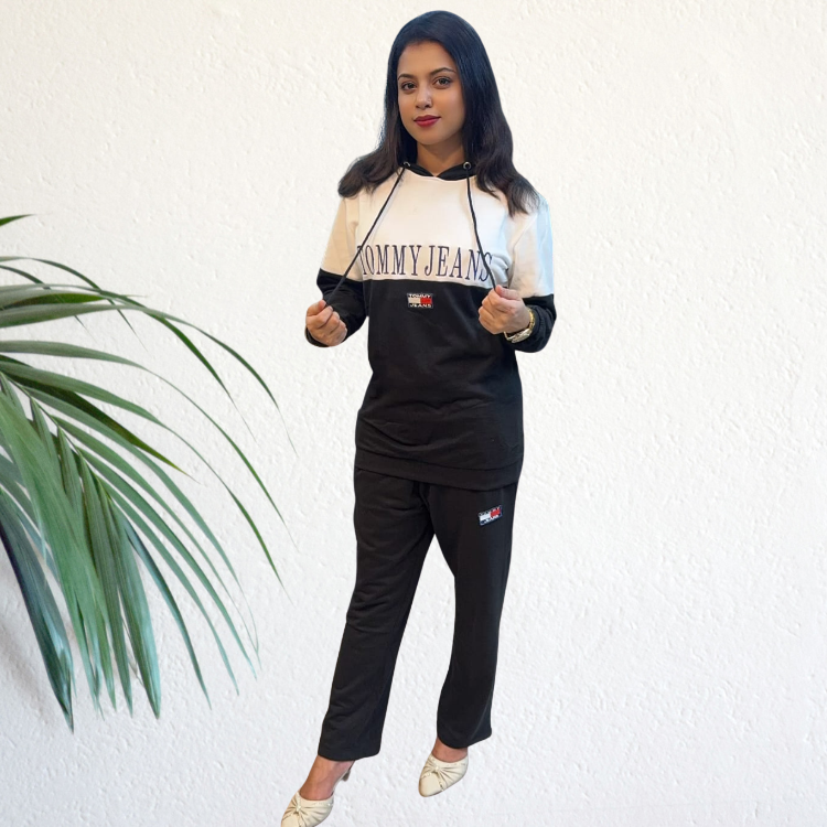 Stay warm and trendy this winter with our premium Terry fabric hoodie set, featuring a classic black and white color combination. The stylish âTOMMY JEANSâ printed hoodie gives a sporty yet elegant vibe â perfect for casual days, coffee dates, or comfy winter outings.