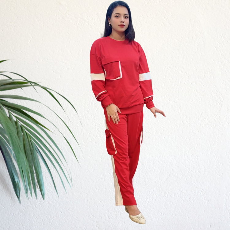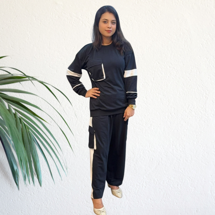 a soft full-sleeve sweatshirt with a trendy front pocket and matching jogger
