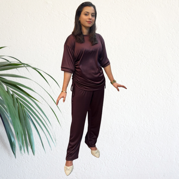 Add effortless elegance to your everyday style with this Thai PP Co-Ord Set in a rich maroon glossy finish.